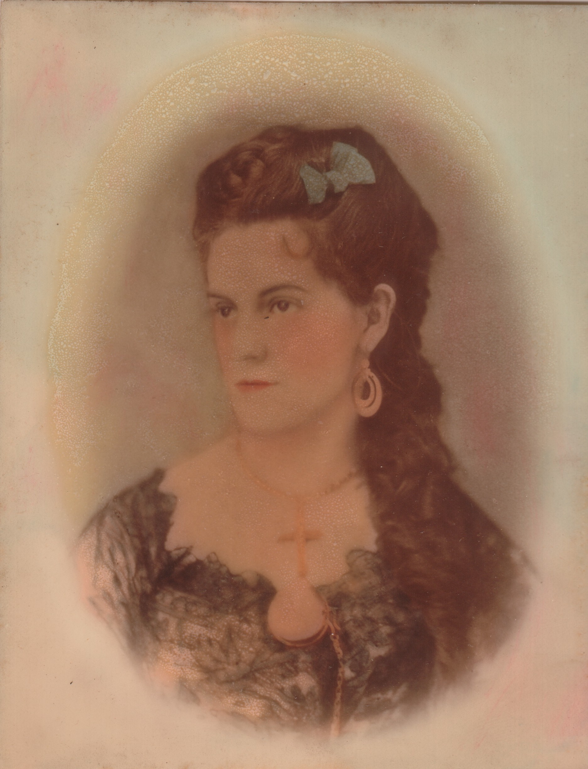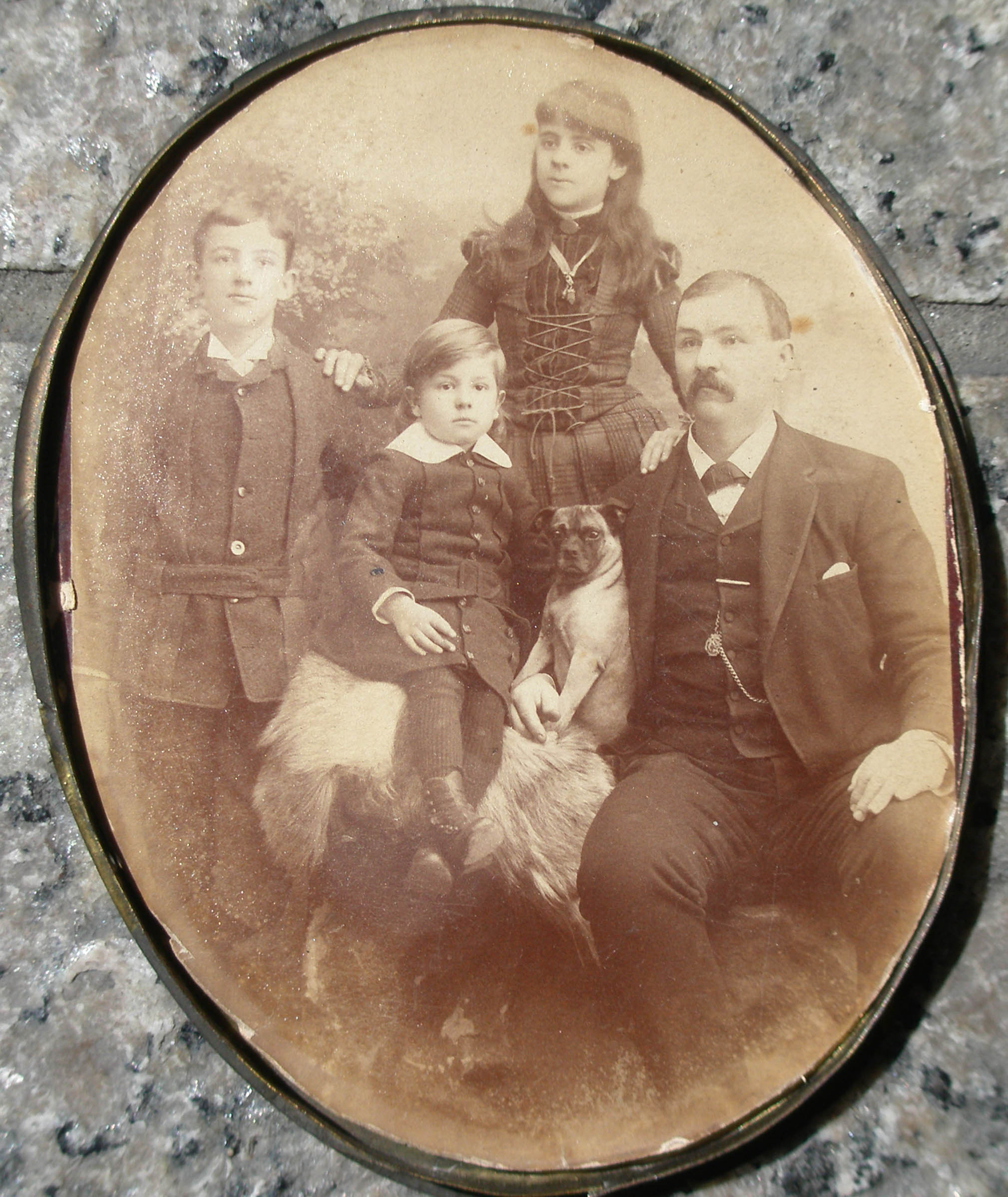 On the left is Addison C. Houston with his children (Lelia Munson behind, Charles H. to the left and John T. in the middle. The portrait on the right is Eudora V. nee COOK HOUSTON.