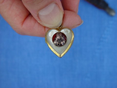 "The gold locket with a picture of a railroad engine given to Louise Coble by her father (John Bunyan Coble sr.) that she gave to me." (Brenda nee Coble Robinson)