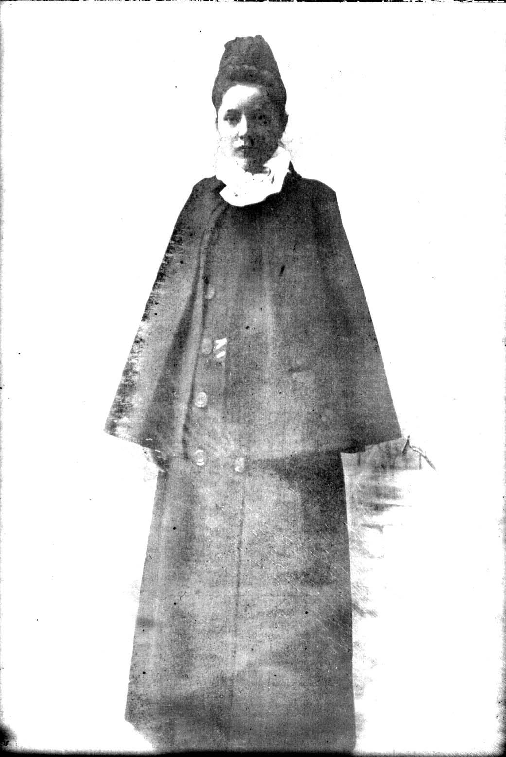 Here's a photograph of Suzanne nee BIERI WYSS in her nurse's uniform. The caption, given to us by her daughter Milda Elizabeth nee WYSS MILLER reads "Suzanne Bieri in her nurse's uniform."