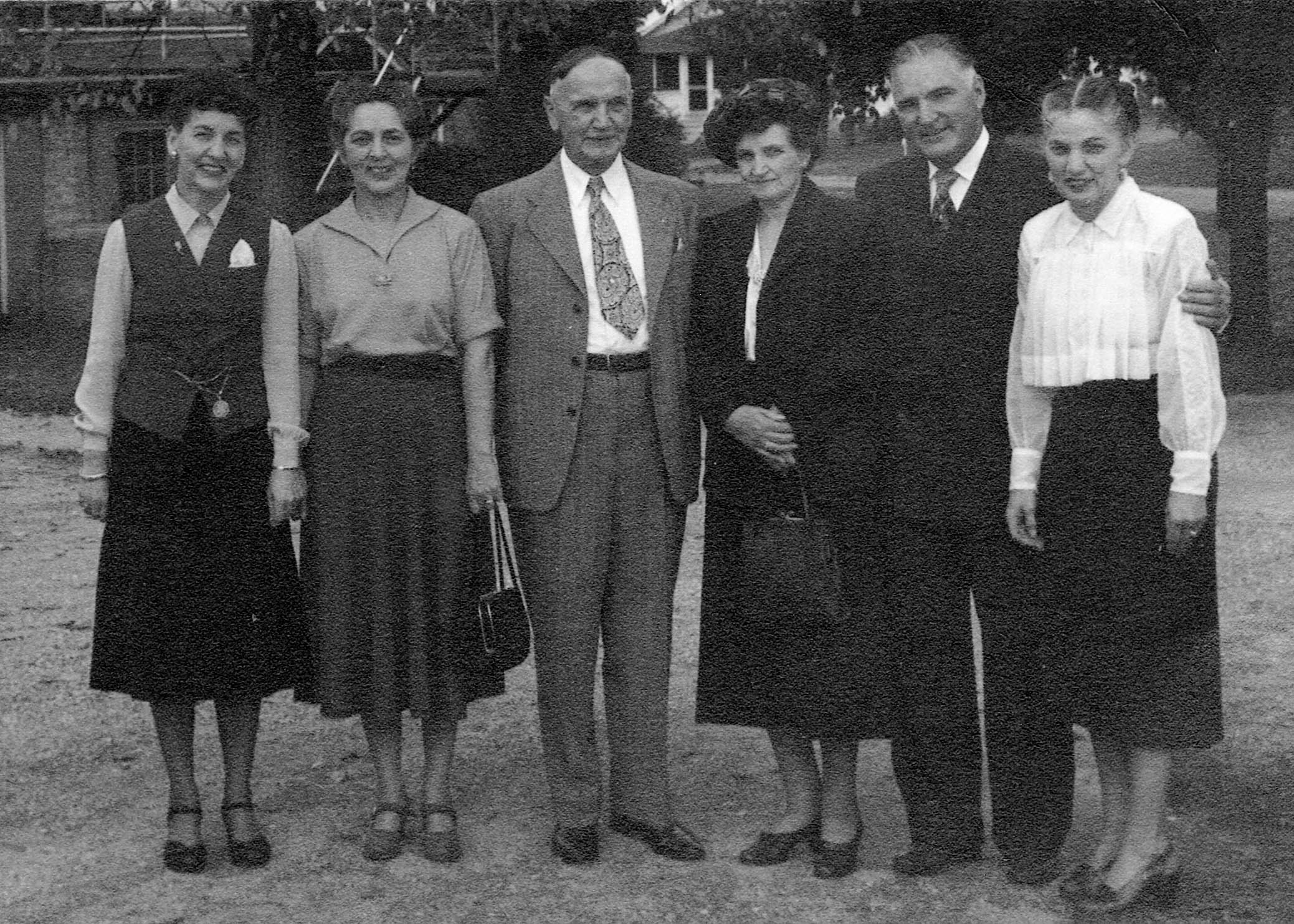 Here's a photograph of Alfred and his children taken ca. 1950. The participants in this photograph are, left to right: Anne nee WYSS RUDGE, Esther nee WYSS BURRIDGE, Alfred WYSS, Olive nee WYSS BRACKER, Leo WYSS, and Milda nee WYSS MILLER.